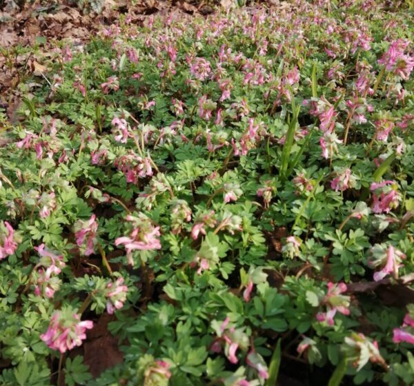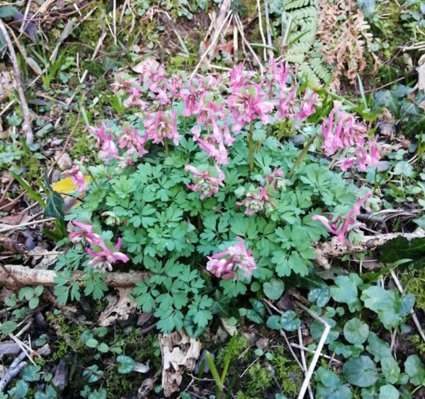 ‘Spring Fumitory’ is a common European tuberous plant and has been grown in Britain for centuries, naturalised under trees and shrubs. It produces mounds of low growing, attractively divided foliage and long spurred, pink-purple flowers in early spring.