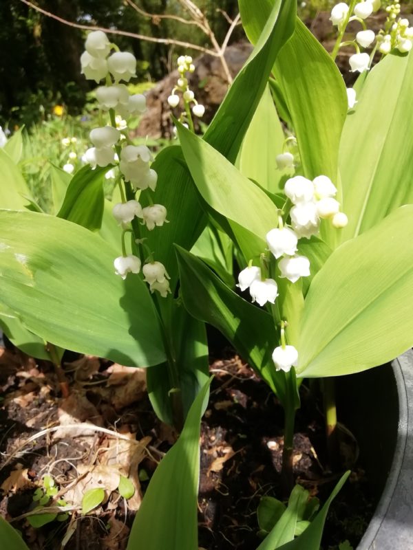 This well-loved plant is native to Britain where it is found locally in woods. Sending up oval leaves and richly fragrant, nodding white flowers in May, it is popular with both gardeners and bees. Growing in a variety of situations where they’re happy, they can be fickle, so try them in different places to give them a choice. Plant 1″ deep laid horizontally. AGM