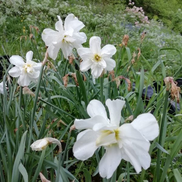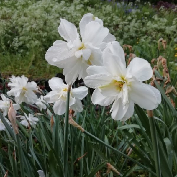 This is the old ‘Double White’, the choice double form of the Pheasants Eye. Flowering in late May, long after the others have faded, its double white petals hold hints of green at the centre and a glorious scent.