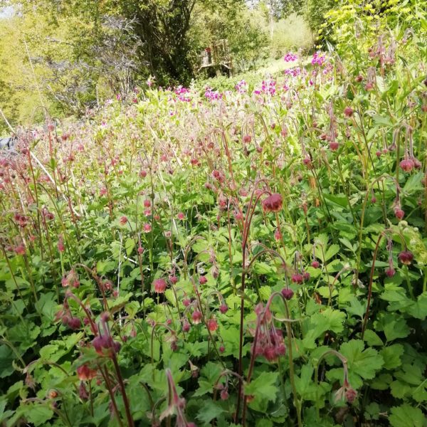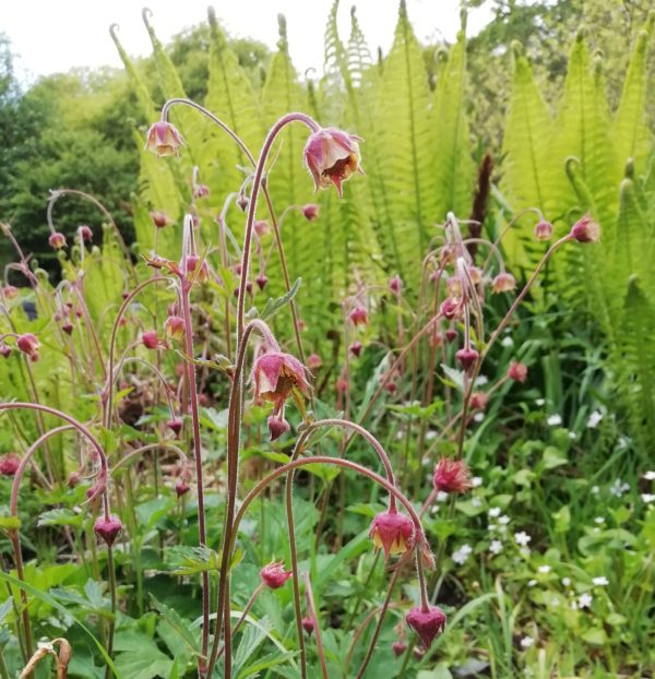 Found in shaded riversides this is intriguing to come across in the wild. Reaching about 18″ it has nodding flowers with a purple calyx and orange-pink petals, and divided leaves like its common cousin Wood Avens.